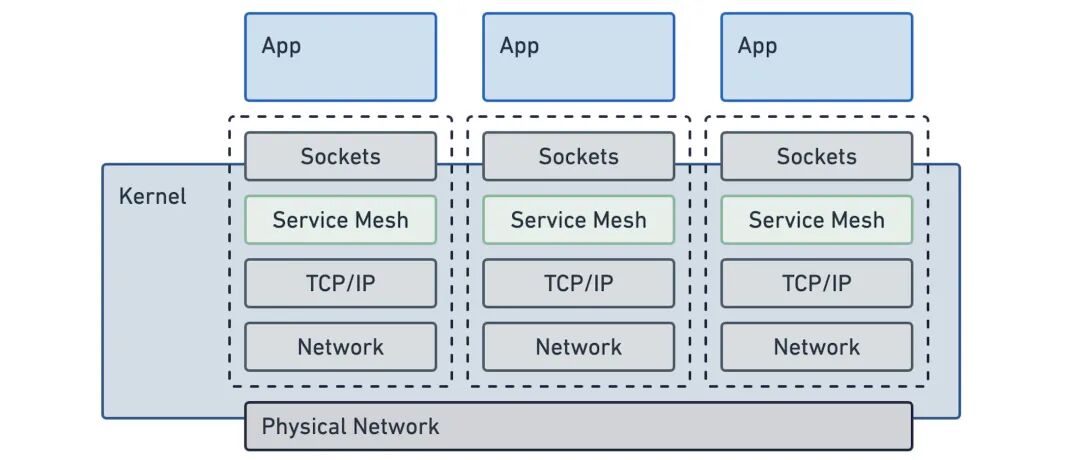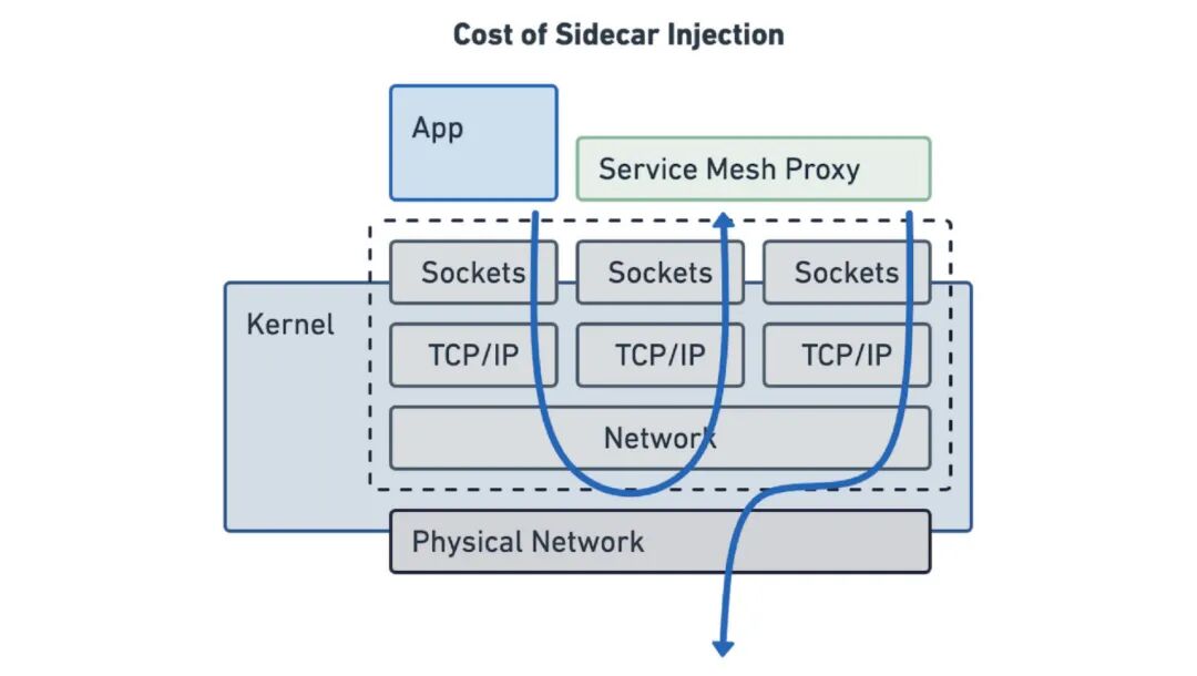 几乎没有开销是来自代理本身的逻辑。开销是通过注入代理,将网络流量重定向到它,终止连接和启动新的连接而增加的。